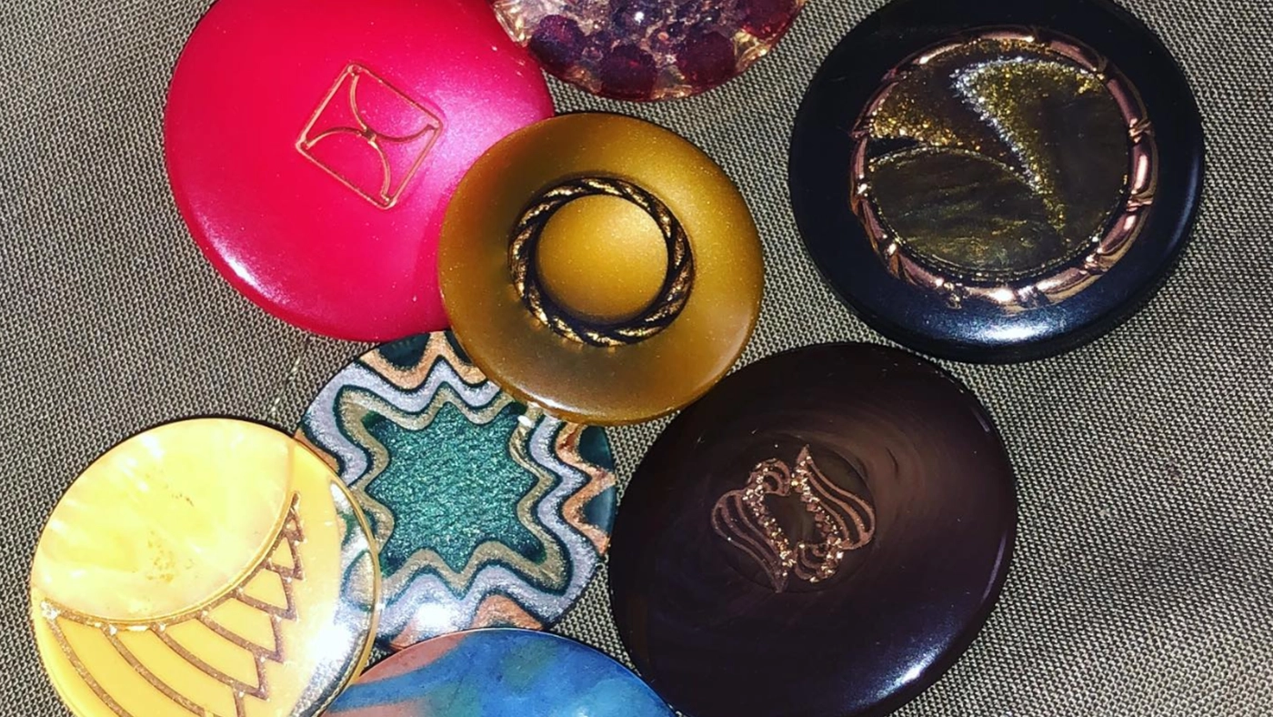 • Les en résine, comme ceux que tu vois sur la photo — vintage, colorés, psychédéliques